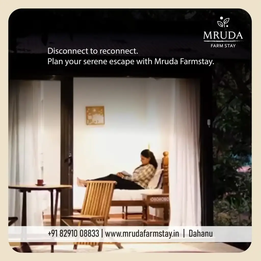 The name ‘Mruda’ translates to soil—a profound symbol of grounding, connection, and returning to one’s roots. This philosophy defines the entire experience at Mruda Farmstay, setting it apart from typical luxury resorts. Located in Asava Gaon, Dahanu, amidst the region’s famous chickoo orchards, Mruda offers a sanctuary of peace while remaining one of the most accessible and sought-after options for a farm stay near Mumbai.